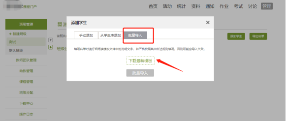 2)导入班级学生:三种方式(选择批量导入为例)